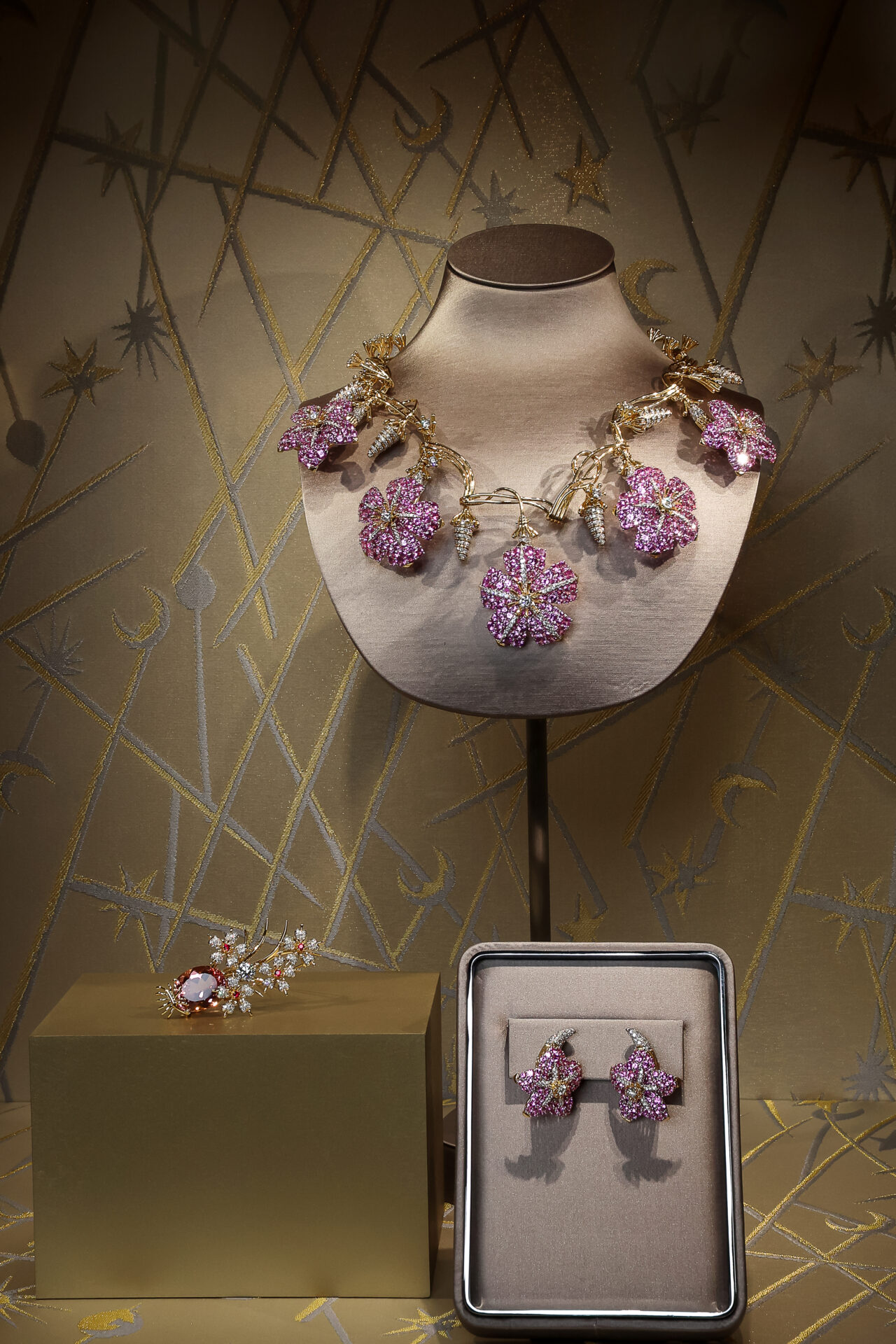 Transformando as exibições cromáticas mais vívidas da natureza em obras de arte hipnotizantes, a forte estética da coleção inspira o espaço, onde joias extraordinárias são exibidas em uma jornada pela natureza – terra, mar e céu.