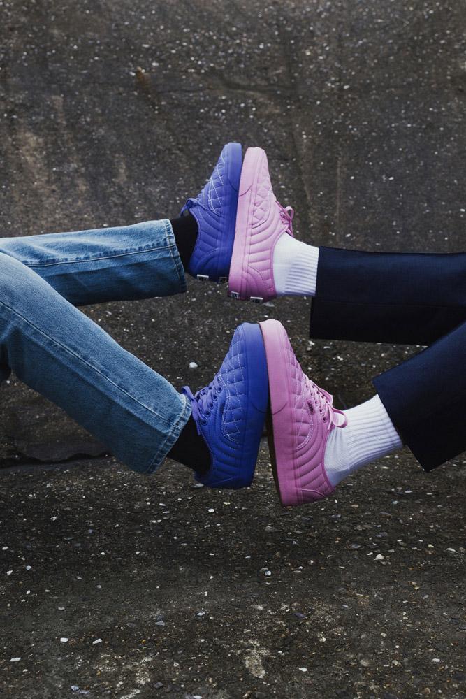 Uma segunda cápsula de tênis da coleção conta com uma abordagem elevada através de cabedais monocromáticos nas colorways “Orchid” e “Baja Blue”. Ambos os Authentics QLT trazem as tendências e as cores do momento, compostas pelo cabedal unicolor, vamp acolchoado e costura lateral. Cada silhueta também é assinada por um patch que celebra a expressão criativa e a parceria entre as duas entidades do lifestyle global.