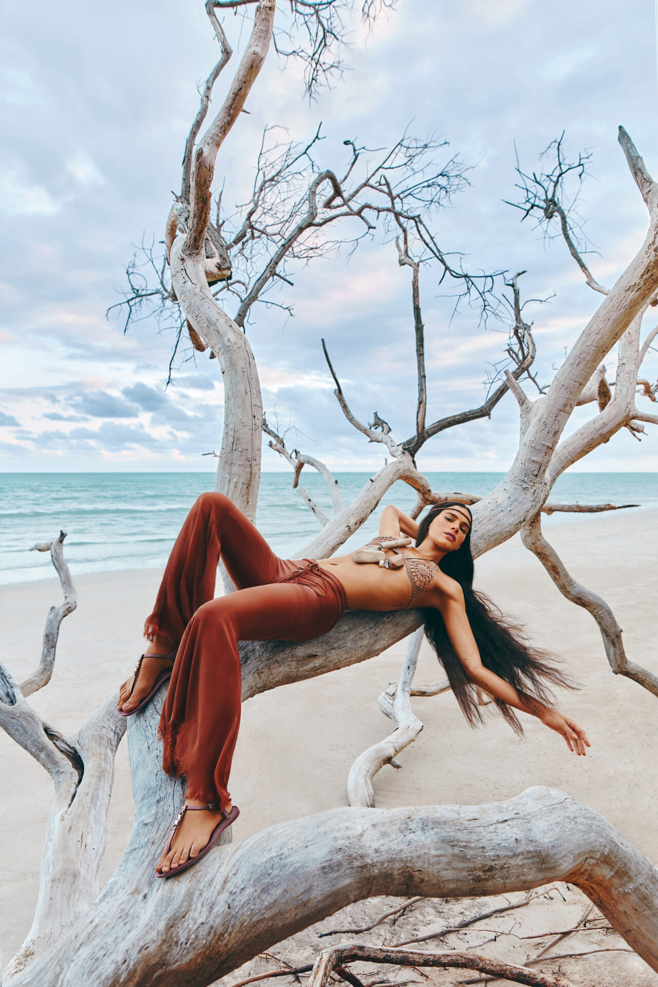 Bruna Marquezine é, pela segunda vez, a estrela da campanha de BriZZa, Arezzo, linha dedicada a flip flops, sandálias, slides e acessórios. Com a direção de Giovanni Bianco e fotos por Mar + Vin, a mensagem “Eu vi a BriZZa sair do mar e naveguei nos olhos dela” surgiu com inspiração na própria atriz. Como em outros projetos de Arezzo, Bruna participou da escolha do time responsável por todo conteúdo, feito na Praia do Marceneiro, em Alagoas.
