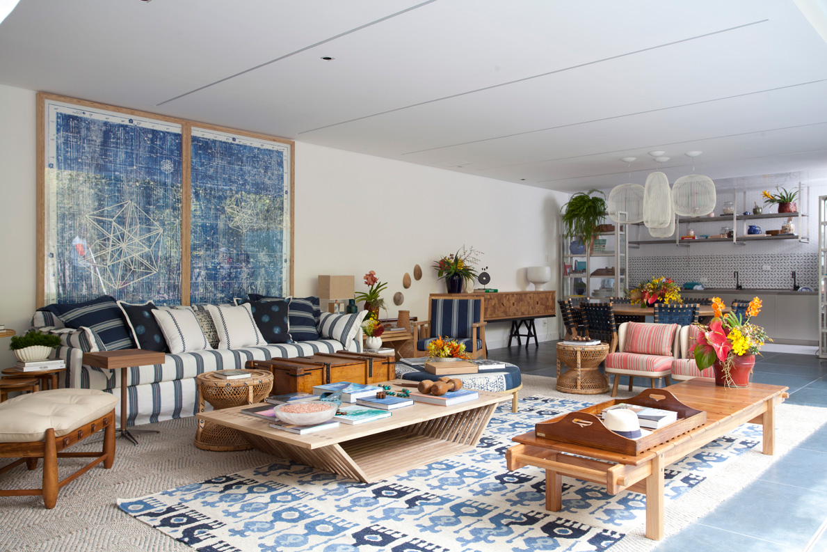 Casa de Praia Decortiles por Marina Linhares: O Caribe, assim como a arquitetura contemporânea e o estilo tipicamente brasileiro, serviu de norte na criação do ambiente: uma casa repleta de referências nacionais, que remete ao encanto paradisíaco, cores vibrantes e brisas refrescantes das praias brasileiras. A Decortiles, parceira do projeto, está presente em todo o ambiente, com linhas de muita personalidade que se conectam com a arquitetura utilizada.