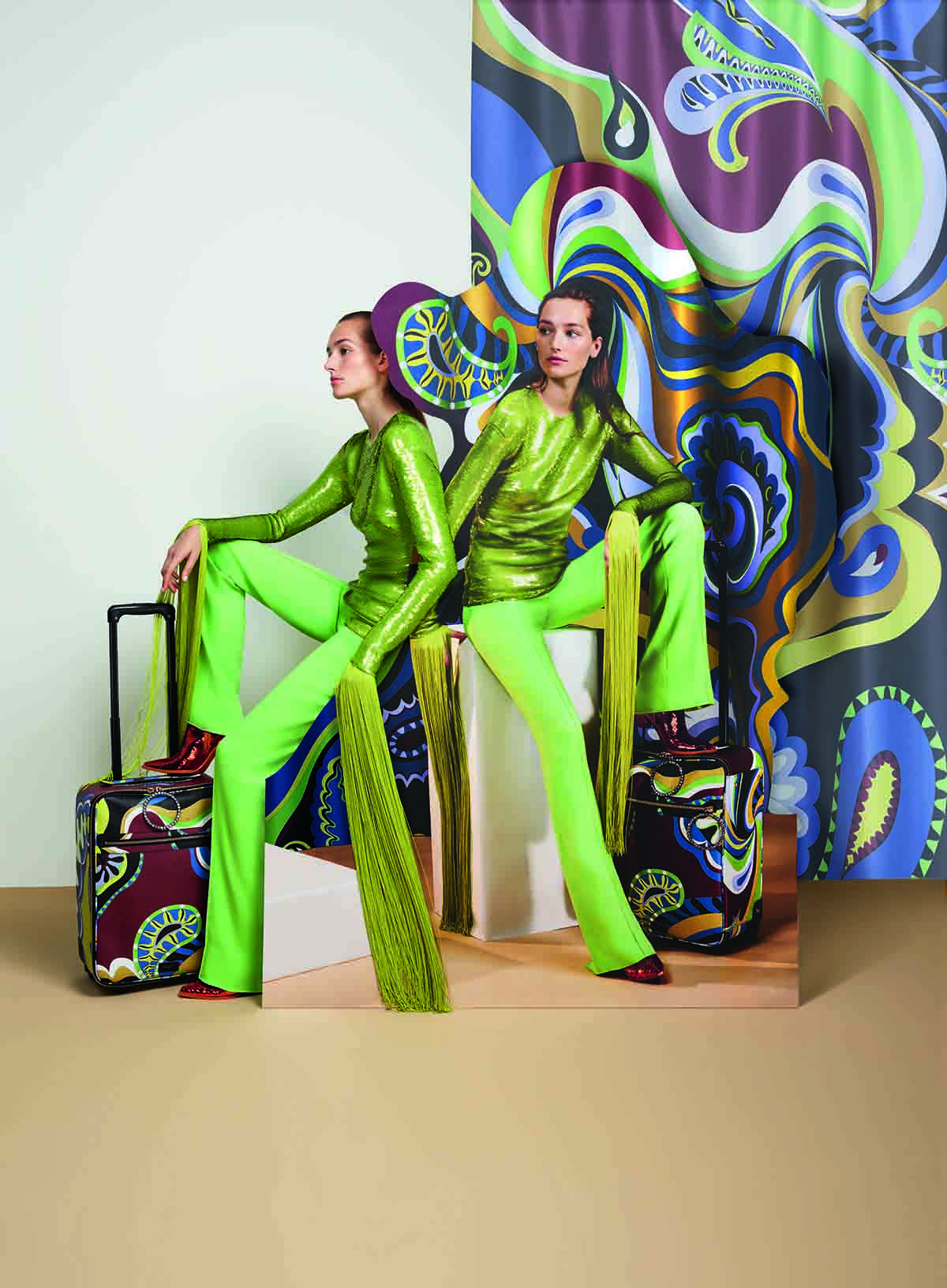 Essa é uma homenagem a heritage Emilio Pucci que sempre considerou viagem uma arte. Aprimorada por uma feminilidade espontânea e diferentes expressões, essa campanha revela uma conversa entre realismo e imaginação.