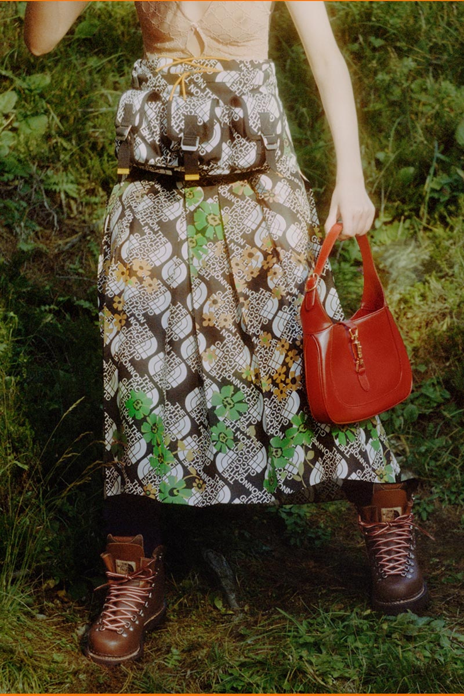 A colaboração das marcas resultou numa coleção que reúne tudo o que você precisa para uma aventura extravagante ao ar livre, com roupas femininas e masculinas como jaquetas, saias, vestidos, camisas e um macacão de tirar o fôlego. Ao lado dos looks, acessórios incluindo duas mochilas retrôs, bolsas de cintura, malas, chapéus, um par de botas de caminhada de couro luxuosas e, para um verdadeiro campista (ou qualquer um que busca uma boa peripécia), há também barracas e sacos de dormir – uma referência ao cenário outdoor da The North Face. O outwear e os equipamentos têm como base os designs originais da etiqueta americana dos anos 70.