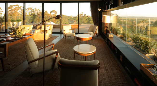 Localizada no ponto mais alto do empreendimento na região de La Barra, e inserida na bela paisagem local, que reserva uma das vistas mais privilegiadas da região, as áreas de lazer do Locanda reúnem solarium, lounge, bar e piscina privativa, pensados de maneira integrada para a comodidade do hóspede, que pode usufruir de diferentes serviços em um mesmo local. O projeto de ampliação buscou integrar a Locanda Fasano ao restante do empreendimento, tanto pela escolha dos materiais que compõem sua arquitetura – em sua maioria madeira e ferro – como também respeitando e integrando elementos da natureza, como pedras e vegetação (Nas fotos abaixo, imagens dos interiores do projeto).